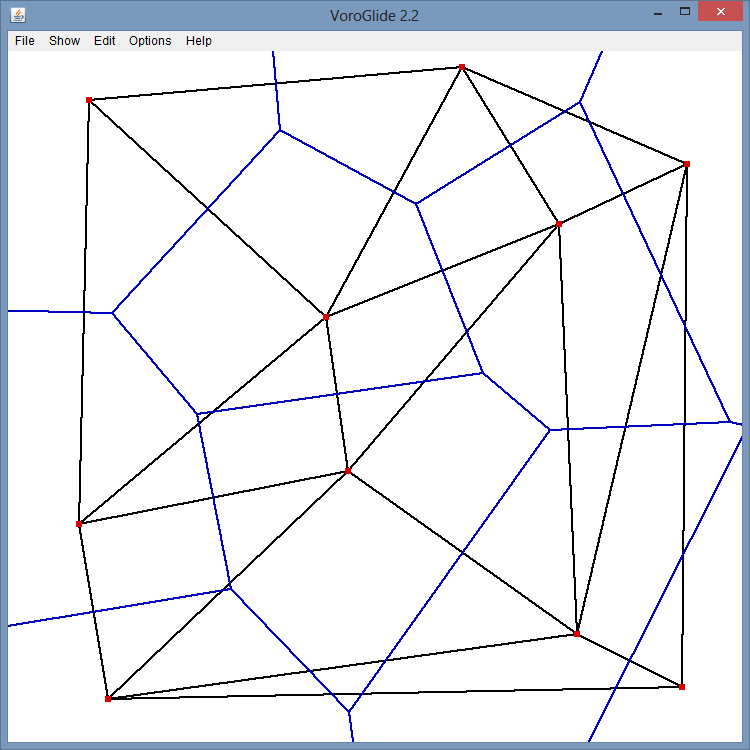 La triangulation de Delaunay consiste à relier les points de l’ensemble S d’un diagramme de Voronoï entre eux.